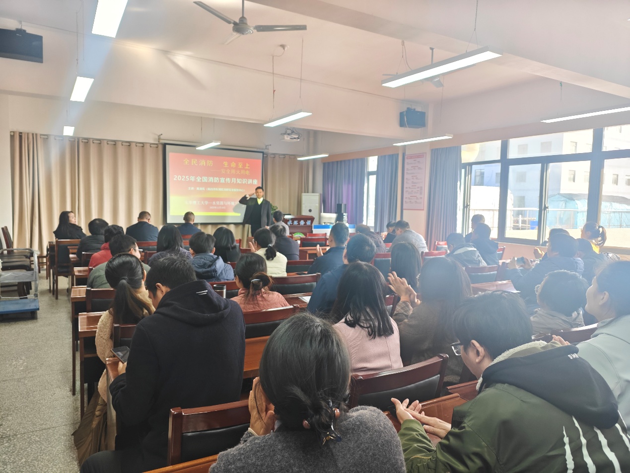 为进一步增强学院师生的消防安全意识,提升应对突发火灾的自防自救能力,2025年11月19日,水资源与环境工程学院特邀南昌市东湖区消联安全服务中心黄潇风老师,为学院师生代表举办了一场生动且富有教育意义的消防安全知识培训。