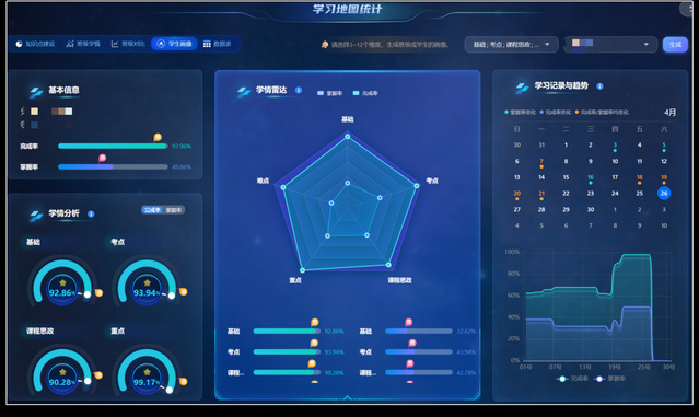 人工智能驱动与个性化适配,激活“学”的动能。该课程以AI技术赋能,形成了‌“二维课堂联动、三阶递进认知、四度量化评价”的AI教学新模式。其中“二维课堂联动”是利用线上智慧平台和线下智慧教室,实现线上线下两个维度的课堂联动;“三阶递进认知”是利用线上平台做好基础阶次学习、智慧课堂开展提高阶次探讨、智慧平台+教室进行应用阶次拓展;“四度量化评价”是以“‌任务完成度、讨论活跃度、活动参与度、解答多维度”‌为核心指标,利用AI智能系统完成学情统计分析、过程动态监测、问题智能诊断,实现“学情画像”精准描绘,基于此推送适配学生认知水平和兴趣点的个性化学习路径、微视频资源和AI学伴大禹,让学生实现“被动接受”到“主动建构”的学习动能转化。