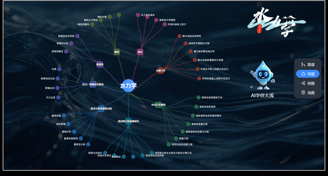 教学内容重构与图谱化融通,夯实“教”的根基。《水力学》作为力学类课程,具有概念抽象、公式繁多、计算量大等特点,传统模式下教学资源呈现方式相对滞后。为此,课程团队对教学内容进行“四模块化”深度重构,将传统水力学知识体系拆解为“基础认知、原理探究、综合应用、学科前沿”四大模块。在此基础上,建立知识点拓扑关系,将知识点与多媒体教学资源以及“治水修身、兴水匠心、水力报国”等思政元素深度关联,构建“知识-问题-思政”三维图谱,以学校承担的“核地”特色典型工程案例串联知识模块,引导学生完成知识内化和迁移应用,形成了“思政元素隐性化、教学内容具象化、知识应用工程化、工程问题实践化”的课程教学资源,为新工科拔尖创新人才的能力培养与价值塑造提供支撑。