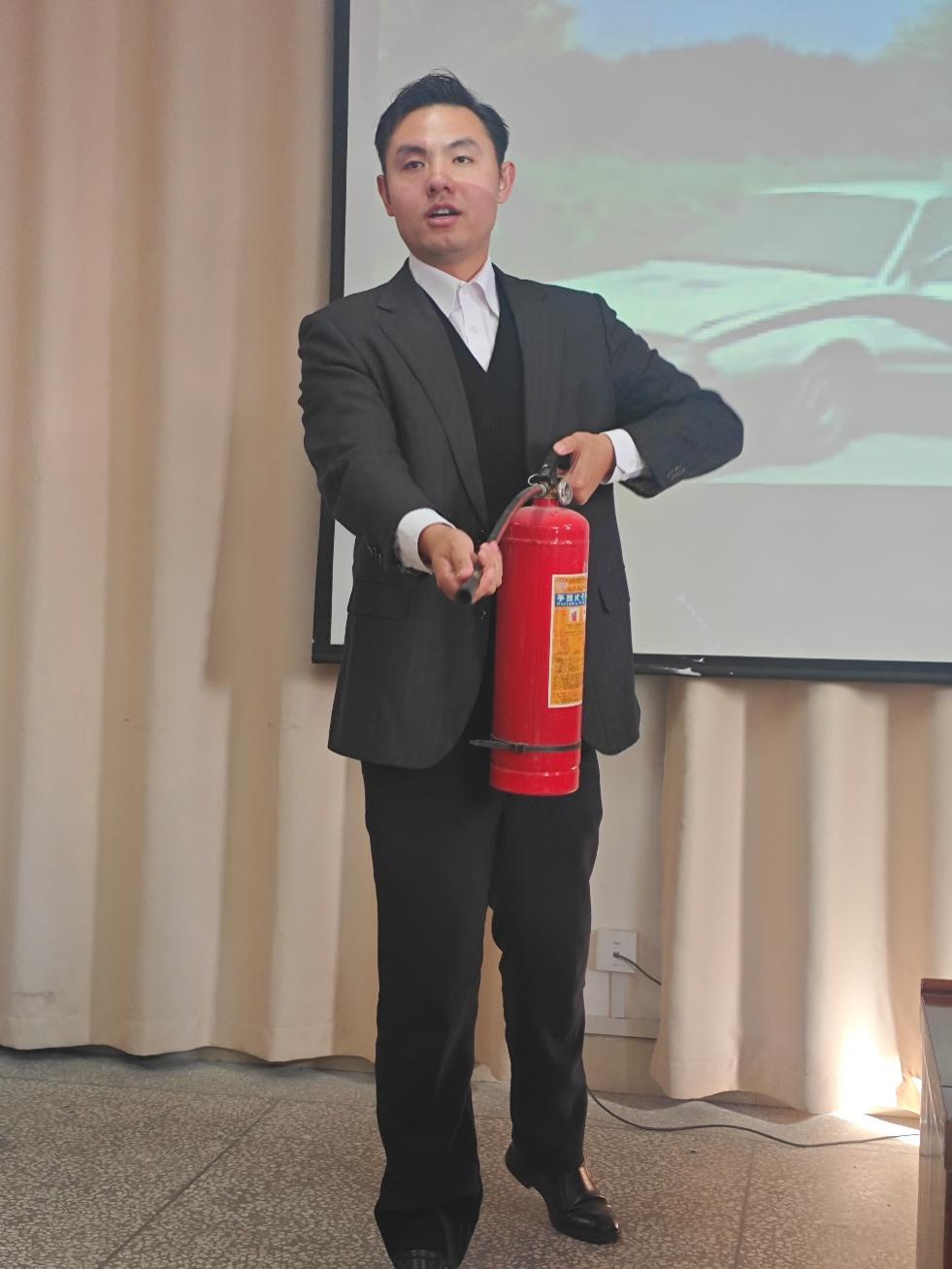 在实操知识讲解环节,黄老师重点介绍并演示了干粉灭火器、气溶胶灭火器、应急救援锤等常见灭火器材与应急救援设备的使用方法,确保大家能够听得懂、学得会、用得对。