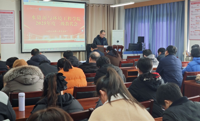 为进一步保障教职工依法行使民主权利、参与学院民主管理、民主监督,深入推进学院治理体系和治理能力现代化,根据相关规定和工作安排,水资源与环境工程学院于2026年1月13日在地学楼B614会议室召开第十一届第五次教职工代表大会。大会由学院分工会主席王嵩主持,学院全体教职工齐聚一堂,共商学院发展大计。