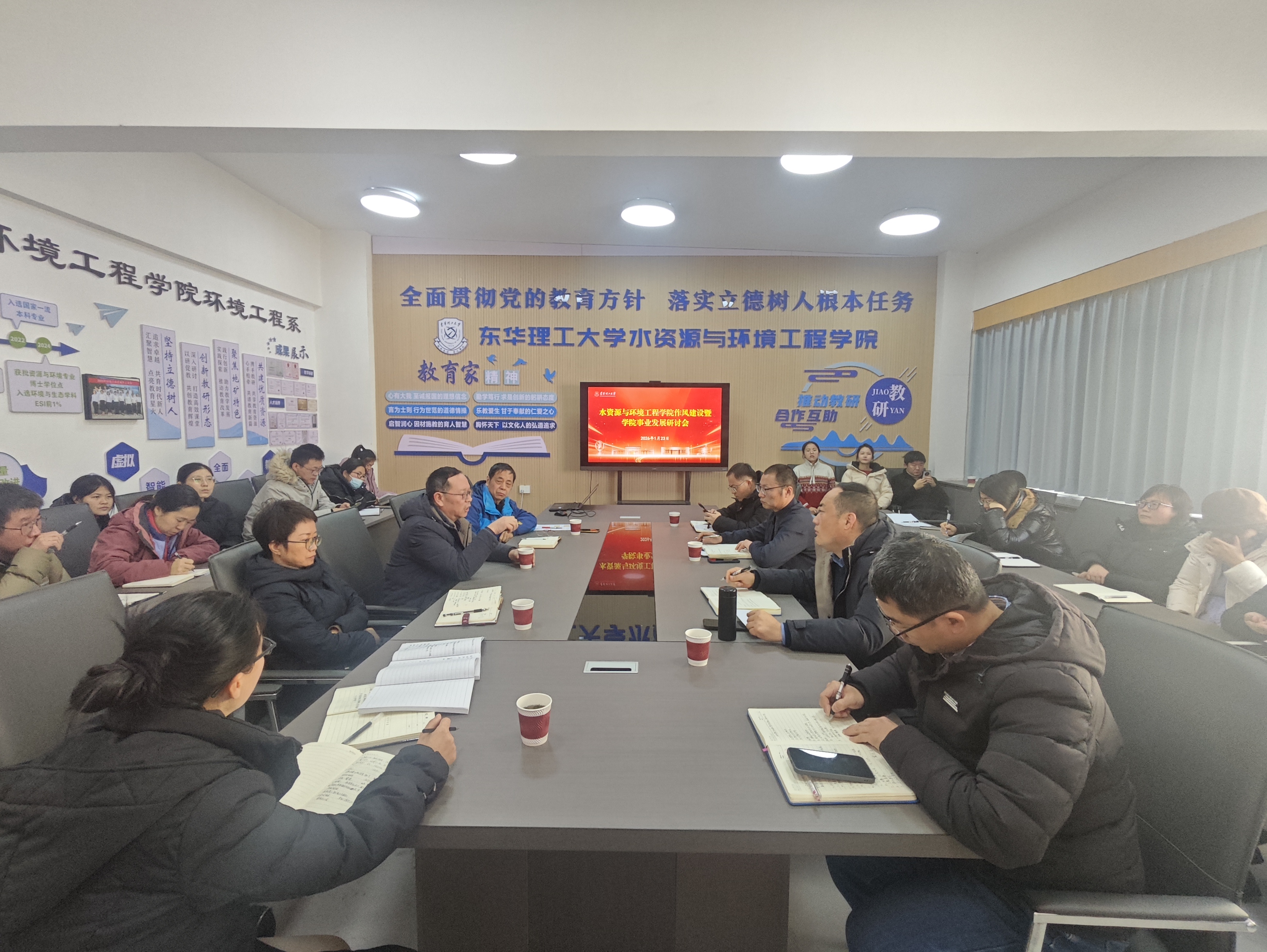 为进一步加强作风建设,明晰学院事业发展方向,1月23日,水资源与环境工程学院在地学楼B609组织召开了作风建设暨学院事业发展研讨会。全体参会人员围绕作风建设与学院事业发展两大主题进行了深入讨论。