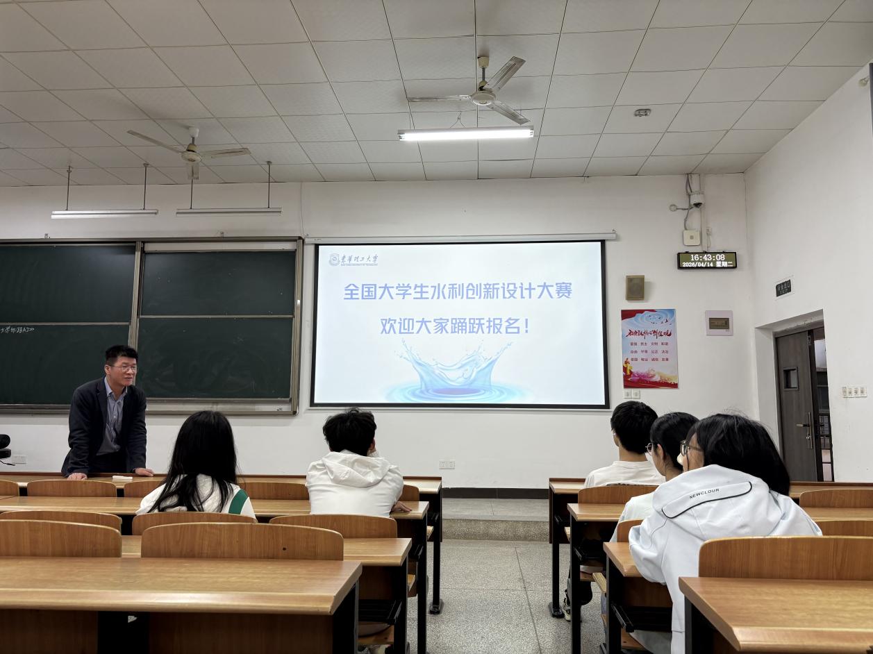 为激发学生创新实践热情,全力备战全国大学生水利创新设计大赛,4月14日,水文与水资源工程专业系主任桂辉老师面向相关专业学生开展大赛专题宣讲,详细解读赛事规则、分享备赛经验。
