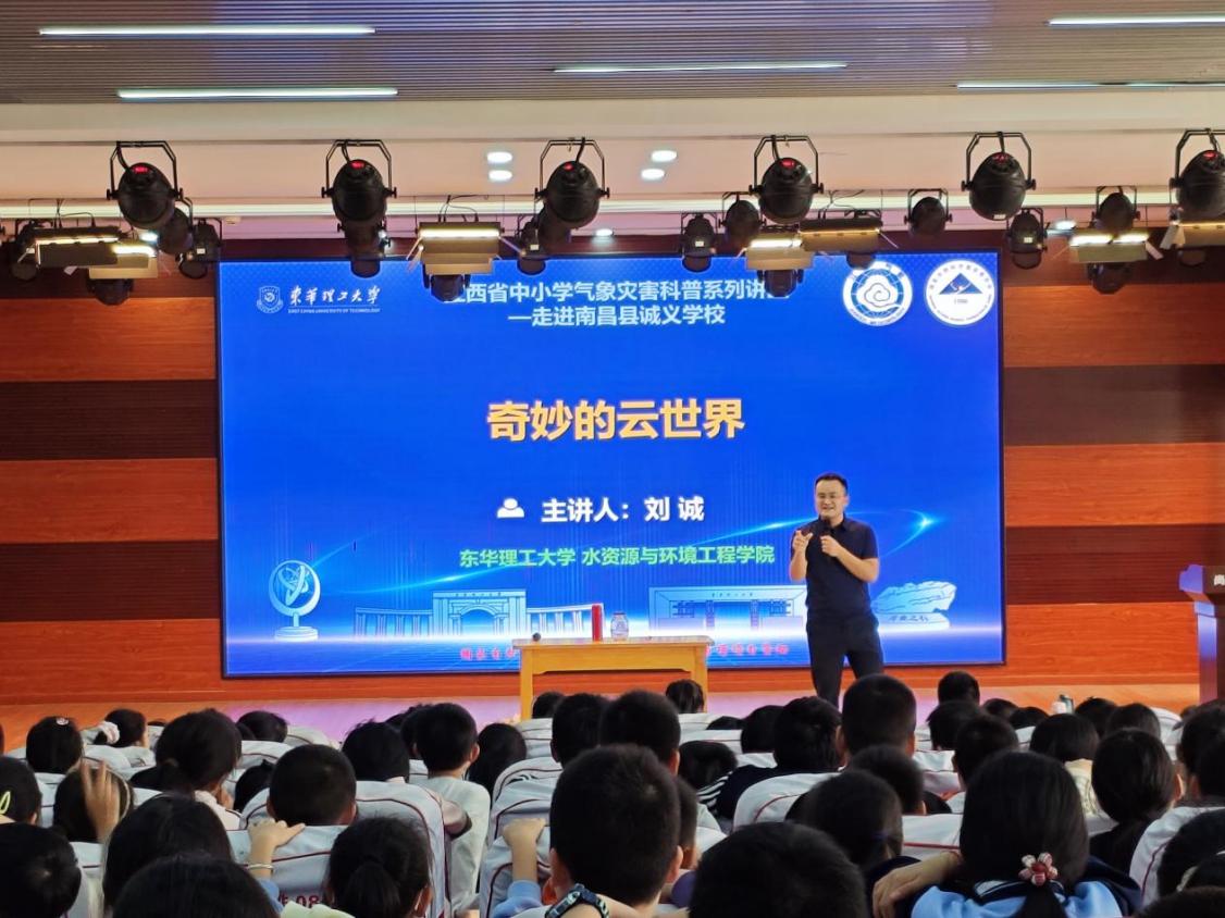 为激发青少年科学探索精神,推动高校优质科研资源向基础教育延伸,4月17日,我校副研究员刘诚博士带领研究生刘新杰、陈锐、黄中琪,走进南昌县诚义学校,开展《奇妙的云世界》专题气象科普讲座。本次活动由国家自然科学基金科普专项项目《未雨绸缪—面向江西省中小学生的气象灾害科普实践》资助,是该项目落地实施的重要环节。