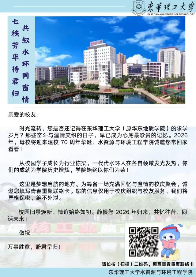 七秩芳华待君归,共叙水环同窗情——东华理工大学建校70周年校庆邀请函