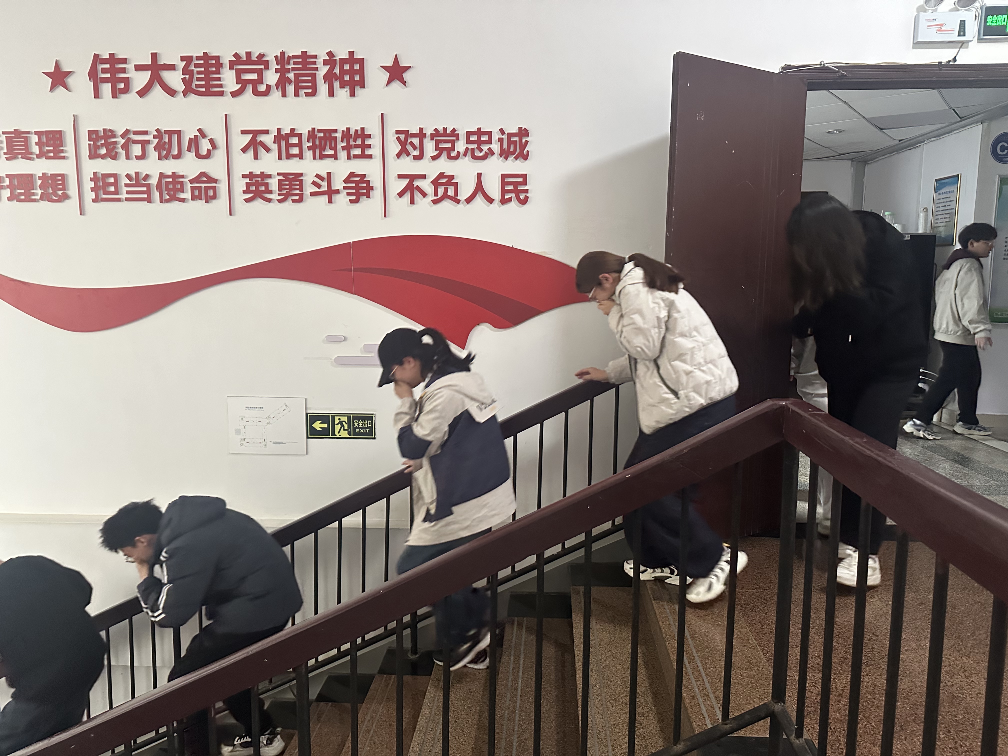培训结束后,学院随即组织开展了应急疏散演练。随着模拟警报声响起,师生迅速反应,按照预定的疏散路线,捂住口鼻、低姿前行,有序撤离至安全区域。整个演练过程紧张有序、配合默契,达到了预期效果。